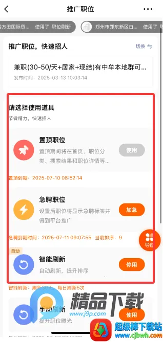 2、推广已发布的职位可以使用平台推流