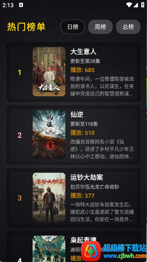1、拥有多个不同榜单,如日榜、周榜、总榜等,能快速找到热门影视。