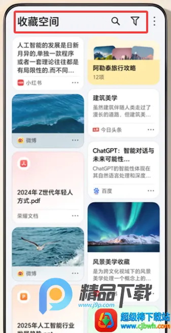 1、随时打开收藏空间即可看到被手机助手自动归类的内容