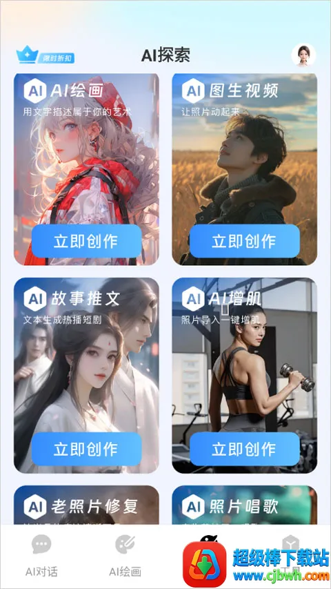 5、还有各种ai探索功能,如ai图生视频、ai故事推文、ai增肌等等。