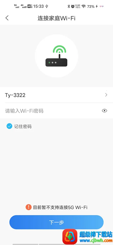5、该软件暂时不支持5GWi-Fi,因此需要用户输入Wi-Fi密码,然后点击下一步。