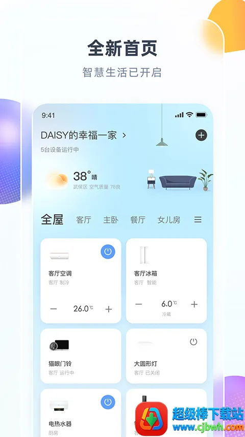 3. 家电状态掌握:实时掌握家中环境数据与家电运行状态,打开软件,数字化家庭尽在手中。
