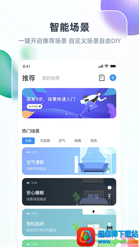 2. 智能场景创建:可一键开启推荐场景,也能自由DIY自定义场景,为用户打造智能轻便的生活。