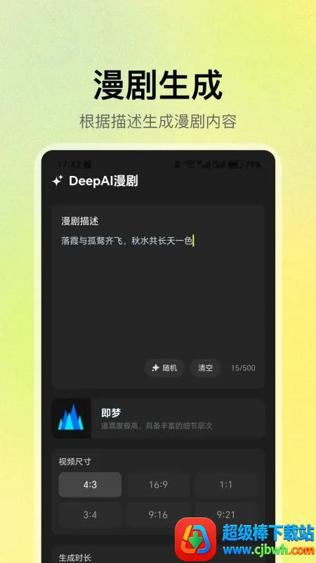 DeepAI漫剧2026是一款自由漫剧创作类app,能轻松实现漫剧创作,记录想法。视频自动保存,后台自动生成,创作过程简单,贴合想法,还能查看热门模板一键制作同款,实时预览保存。