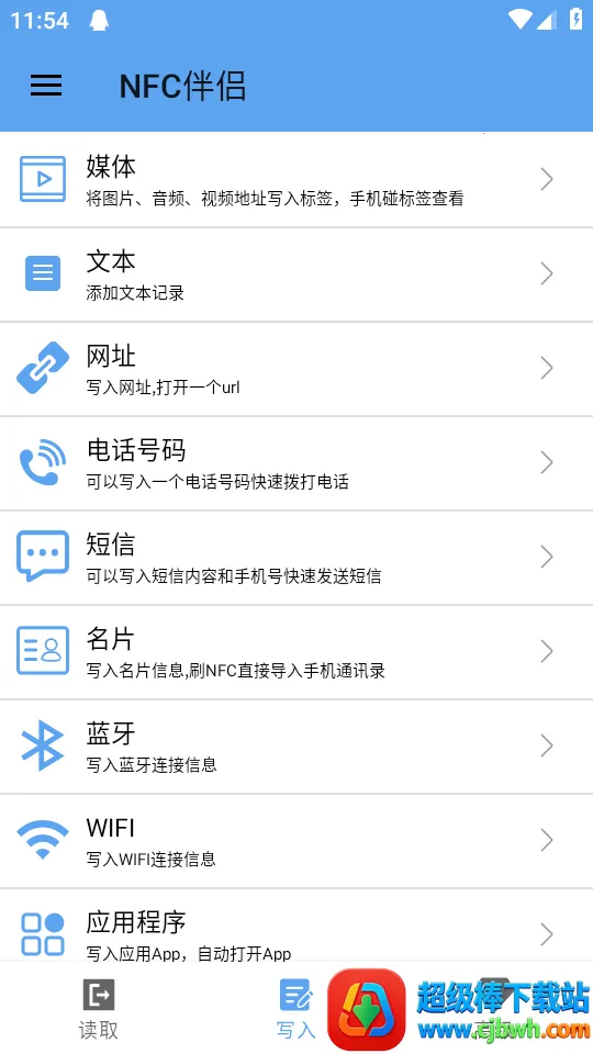 可写入多种类型数据,如媒体文件(图片、音频、视频)、电话号码、短信内容、名片信息、蓝牙连接信息、WIFI连接信息、应用程序等,满足多样化需求。
