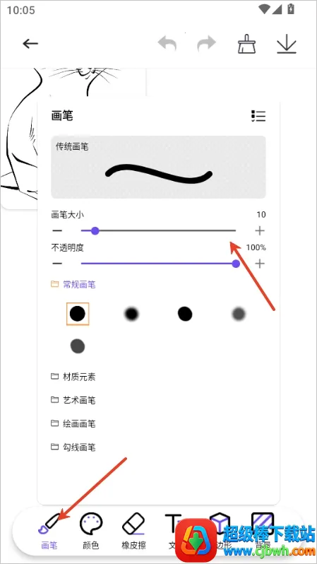 3、之后就可以选择画笔,设置画笔大小、透明度等等。
