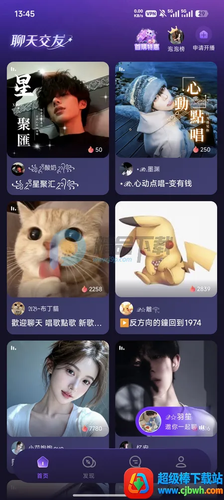 自在开麦互动:可加入各种主题的即时聊天与声音派对,无需露脸就能轻松交友,在温柔氛围中获得陪伴与共鸣。