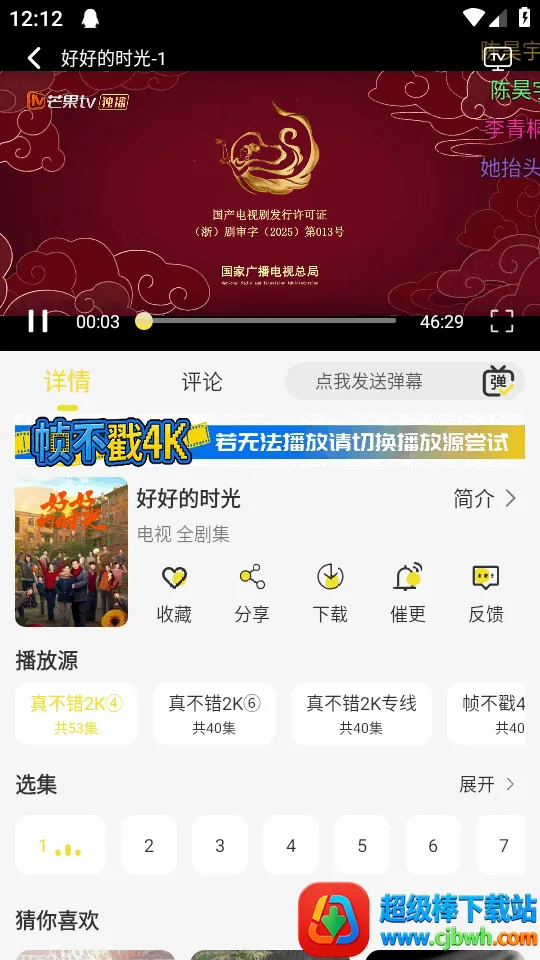 能够轻松换源。打开播放的影视剧播放页面,能看到播放源,选择切换即可,在播放时点右下角播放源也可选择。