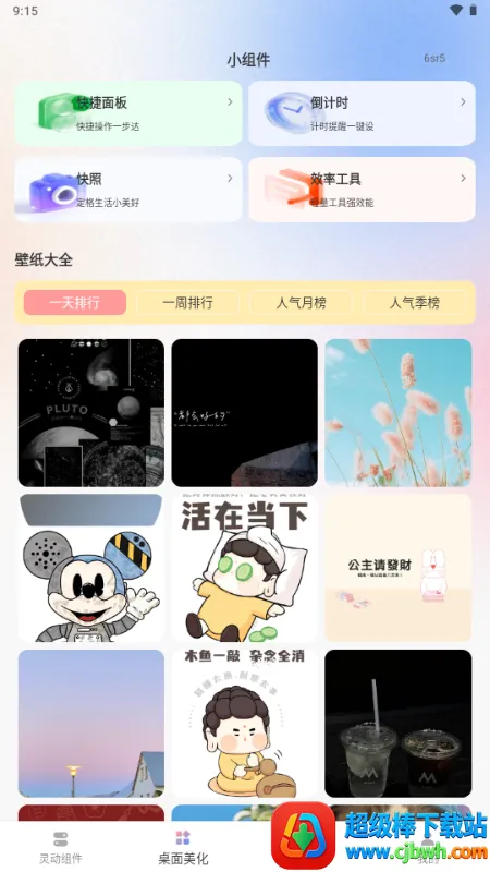 它提供丰富的个性化组件与壁纸资源,画板、效率工具、照片墙、倒数日等小组件可自由组合搭配,海量高清壁纸随心更换,轻松打造专属美观桌面。