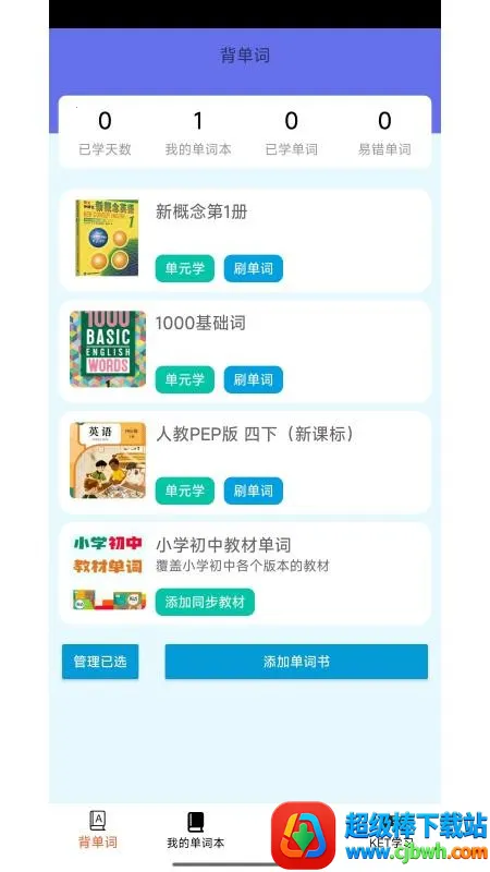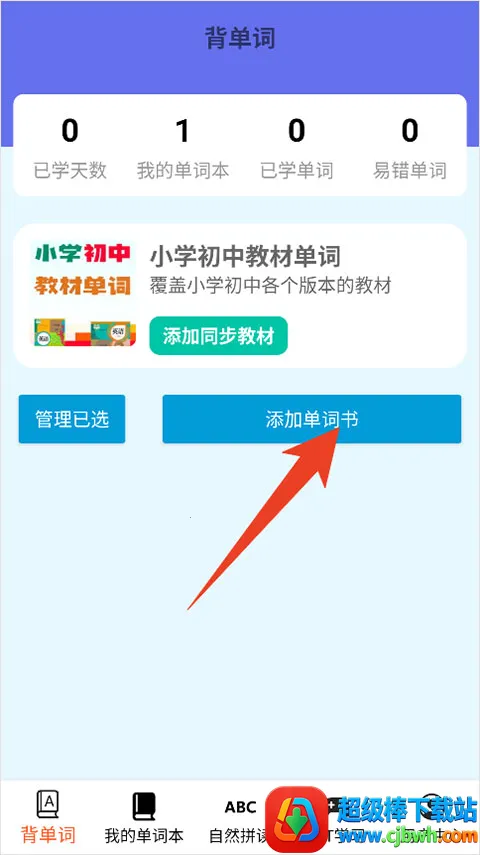1、打开登录蓝思背单词app后进入背单词界面中添加单词本