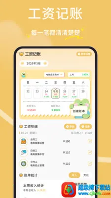 便捷管理收支:能高效完成工资记账与资金统计,支持工资记录、收支明细、考勤打卡统计以及日常开销记账等,方便用户全面管理个人财务状况。