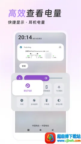 3. 可在桌面小部件、通知栏和状态栏中随时查看蓝牙耳机的电量信息,无需打开应用即可掌握使用状态。耳机连接手机后,系统会自动弹出电量提示窗口,直观展示当前电量情况。