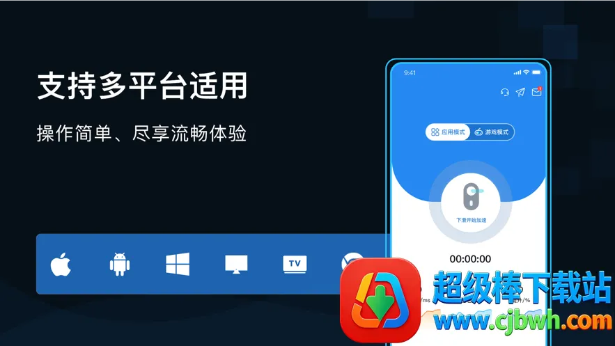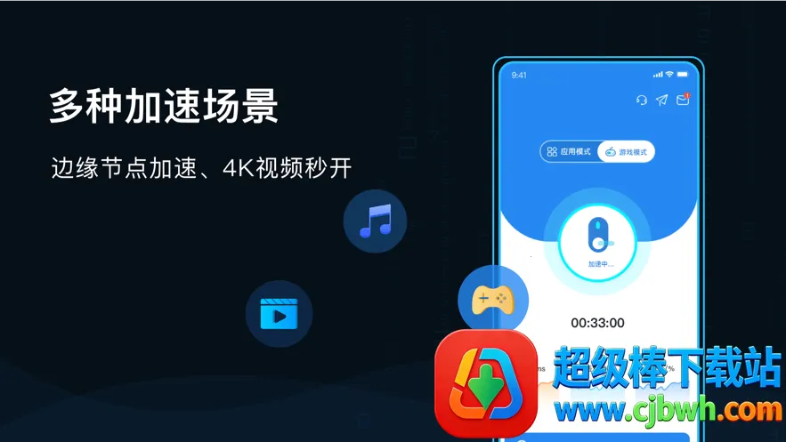 智能加速:游戏分配专属节点,WIFI、4G随意切换,网络零约束,超神快人一步。
