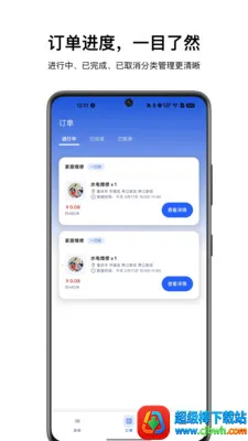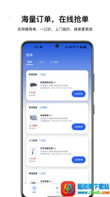 1. 订单处理超便捷,师傅能通过App在线查看订单,快速抢单,还可联系客户预约上门,上传服务进度,完成报价、开工、完工及售后处理等操作。