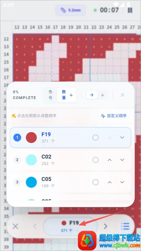 拥有专注模式,选中某一颜色后图纸上其他颜色自动隐藏,拼完的豆子会保留在图上方便定位,使拼豆过程更专注高效。