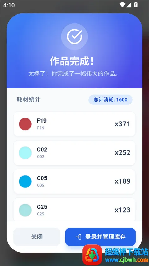 5、拼豆完成后,自动统计消耗的豆子数量和颜色