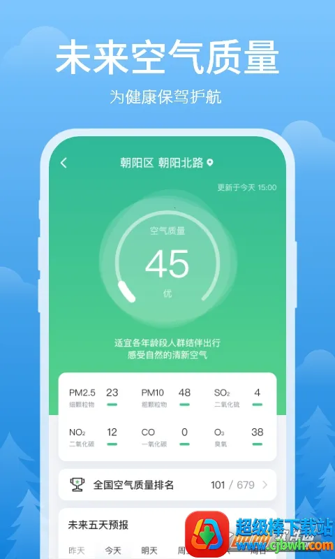 精准天气数据呈现:实时显示气温、湿度、风力等核心指标,同时搭配空气质量详情,如 PM2.5、PM10 等,让您直观了解环境状况。
