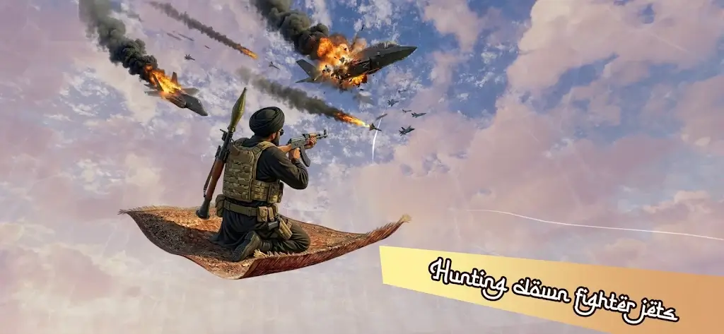 1. 独特战斗体验:游戏将战场设定在开放的空中空间,玩家骑乘魔法飞毯与敌机及现代战斗机对抗,下方荒漠增添压力,带来全新战斗感受。