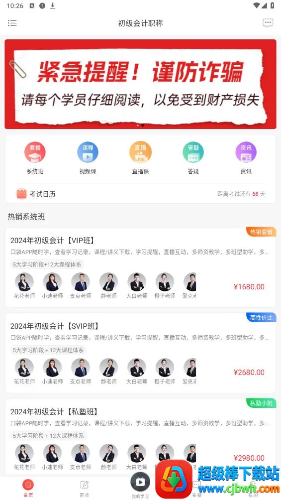 它的功能超齐全。高清视频课汇集业内名师,章节规划合理,讲解清晰,还支持离线下载,让你随时随地学。AI智能题库有同步教材练习、每日一练等多种功能,做题还有视频解析。名师直播课在线互动,针对问题和政策变化及时讲解。专业答疑团队近百名专家,为你一一解惑。