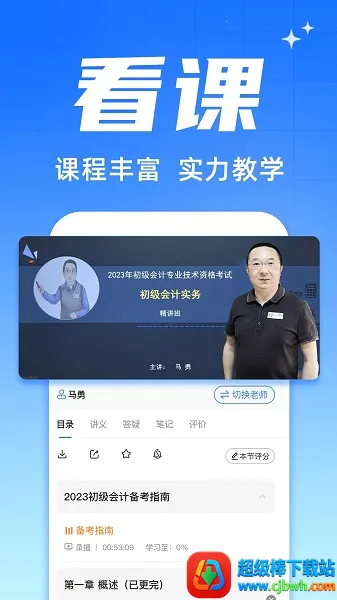1. 全科目课程体系:涵盖会计基础、实务、法规等,支持初级、中级、CPA、税务师等考试,课程分章节精讲与冲刺密训,助您把握考试要点。