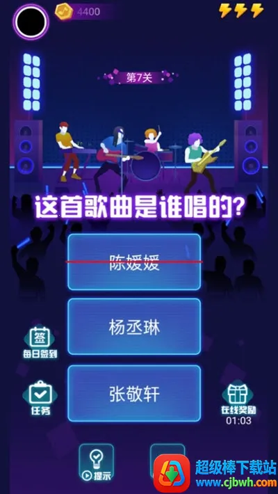 如果你想知道蒙面猜歌手是哪一个节目,那这款游戏绝对值得你了解。它是一款超有趣的音乐竞猜游戏,能让你过足猜歌瘾。游戏里有海量曲库,从经典老歌到流行热单,各种风格应有尽有。玩法简单又刺激,进入游戏后,你可以选单人挑战或多人对战模式。系统会随机播放歌曲片段,你要根据旋律和歌手声线,从四个选项中猜出正确答案,答对就能积累积分。碰到难题还能使用提示或消耗金币跳过。连续答对有额外金币奖励,还能解锁更多高级歌曲库,关卡越高难度越大。这里不仅能满足你听歌的喜好,还能挑战你的音乐知识储备。而且实时在线对战模式,能随时邀请好友或匹配其他玩家,一起比拼谁的音乐知识更丰富哦。快来体验,看看你是不是猜歌高手吧!