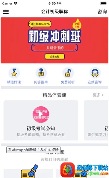 考呀呀是专业会计备考软件,为零基础到高级会计职称考生提供名师直播课、海量智能题库、精品资料。支持定制计划、一对一答疑、离线缓存。有丰富学习资源,题目视频解析,多元练习模式,大纲同步更新,助考生高效备考取证。