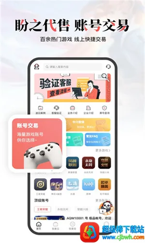 盼之代售交易平台是专注游戏装备与账号交易的数字资产服务空间,汇聚海量资源,覆盖多元游戏生态。提供买号卖号等服务,有免费估价等功能,多重安全保障,让交易安全高效,随时随地便捷进行。