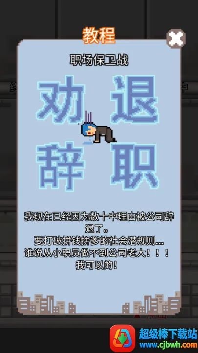 想了解求职生存战中的辞退情况?这款趣味养成逆袭人生游戏能满足你!在游戏里,你会化身底层小职员,通过认真上班学习技能提升自己,完成工作获取金钱与经历,满后依升职率决定去留。这里辞退有独特设定,当工作经历从两位数变三位数职位提升时,被辞退会有补偿金。游戏采用复古像素风,画面独特有辨识度,操作简单易上手,场景丰富不单调,还有不少隐藏小窍门。副本多样,单人挑战或多人组队都有,操作逻辑清晰,界面精致。当桌面文件累积、体力值降为 0 或同事图标有感叹号时,都有对应解决办法。通过它,你能深入体验职场生存的别样乐趣,清楚知晓辞退相关机制,快来试试吧!