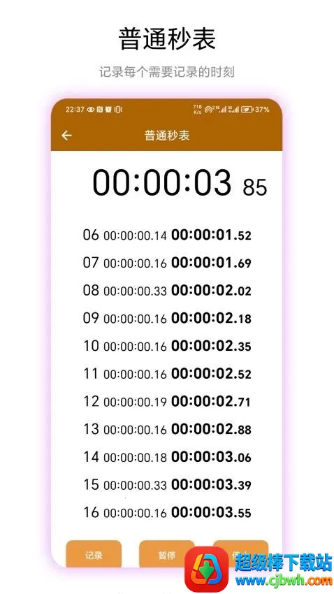 2. 精准记录:非常精准无误的时间秒表记录工具,没有任何偏差,满足用户精细化记录时间的需求。