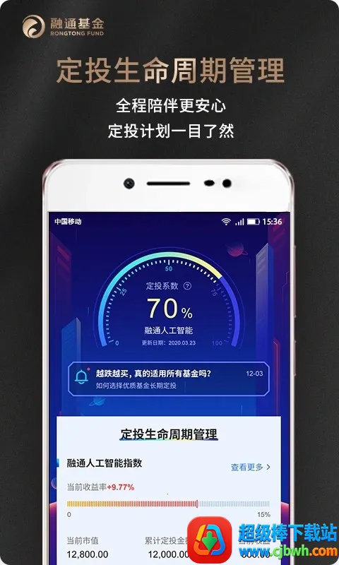 2. 智能定投策略:对接融通创业板指数基金、融通人工智能指数基金 LOF、融通深证 100 指数基金,采用独家研发的智能买入策略止盈定投策略,结合市场风险溢价指标,让定投更省心。