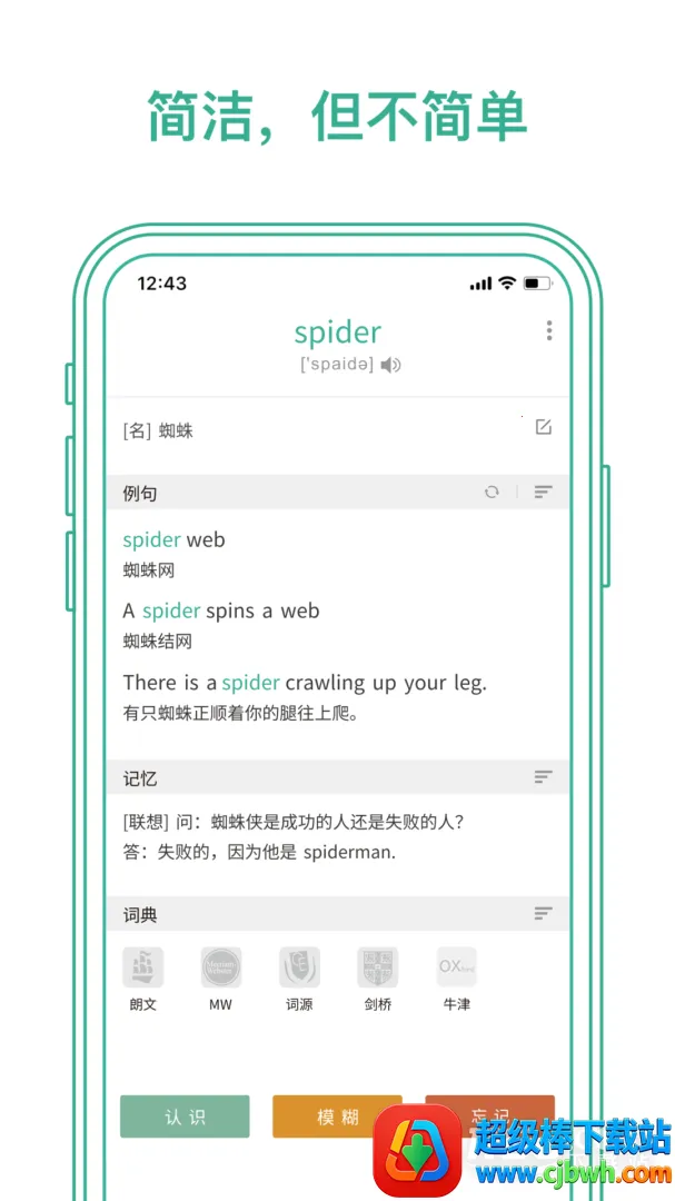 2. 提供丰富多样的学习模式,如单词卡片、拼写练习等,还有真人发音、例句、同义词等功能,帮助用户全面理解运用单词。
