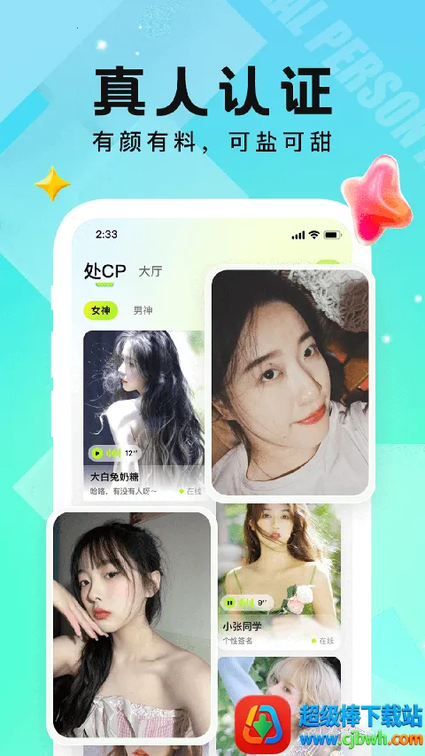 2. 拥有超高颜值的交友社区,优质单身男女在此尽情互动。