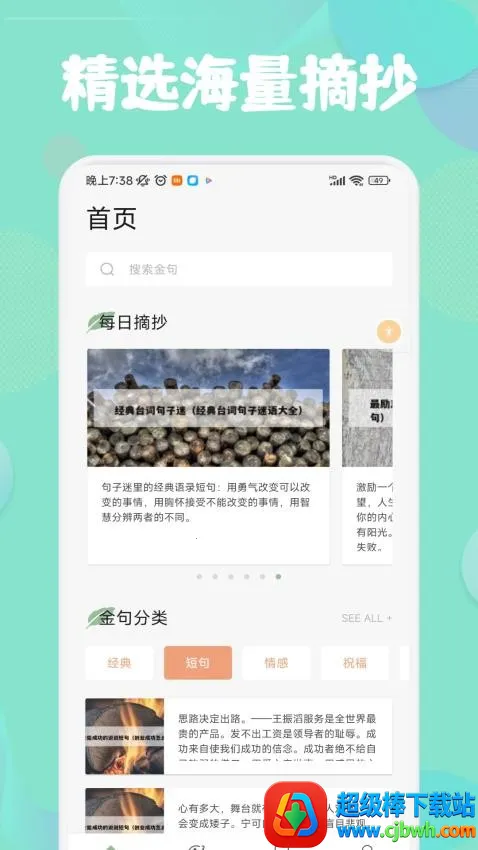 千阅2026最新版本是长沙掌月互动信息技术有限公司打造的看美文工具。文案金句分类清晰、更新快,界面精美,功能丰富,有书籍精选、字体主题切换等,还能自动翻页、语音朗读,免费无广告,阅读体验好。
