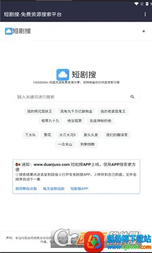 短剧搜是一款免费的短剧搜索平台,汇聚全网丰富网盘资源,每日实时更新。输入关键词就能快速找到想看的短剧,支持多平台,无会员无广告,还具备多种特色功能,方便用户追剧。