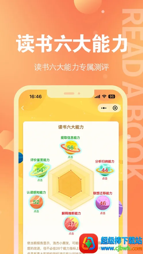 阅读力测评:首测复测,生成CQL等级与能力雷达,能精准评估孩子阅读能力。