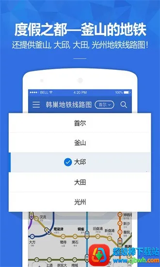支持多城市地铁线路查询,涵盖首尔、釜山、大邱等。