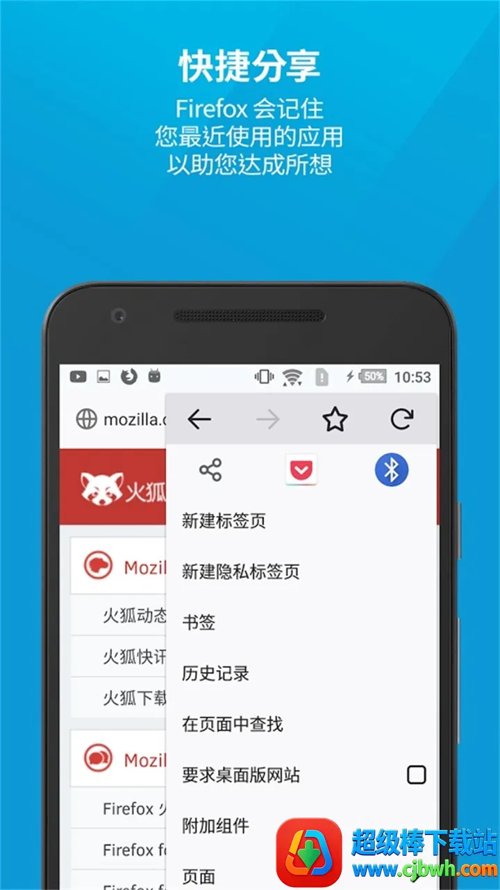 2、高度可定制:支持扩展功能,全方位支持热门附加组件,可自由调整搜索栏位置,选择分享的数据类型,还能切换主题、自定义工具栏,打造专属浏览器。