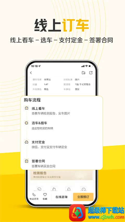 拥有线上预订功能,可在线预览全国车源及车况讯息,线上下单及签署合同,足不出户省时省力。还支持全国车源全国拍,1元参拍,0服务费,缴纳1元拍卖保证金,即可拍全国车源。