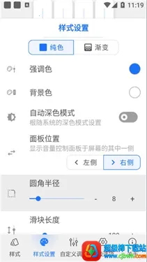 点击样式设置,能设置样式的背景颜色、模式、面板位置、半径、长度、宽度等,也可选择定制选项来打造专属样式。