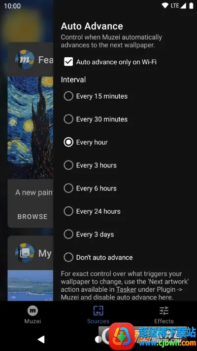 1. 支持每日自动更换一张全新吉卜力主题壁纸,可自由设定更换周期,1小时、1天自定义,还兼容Muzei标准插件生态,能轻松与其他Muzei扩展联动使用。