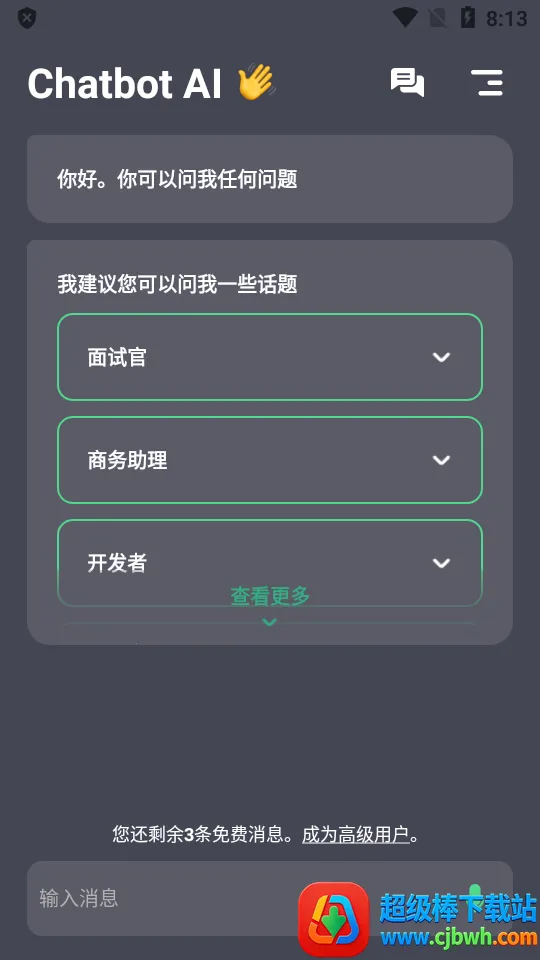 Chatbot AI是一款超棒的智能软件。它以GPT-3等模型为驱动,能提供智能对话与个性化交互服务。不管是专业知识疑问,还是日常琐事咨询,它都能给出周到回答。它理解对话上下文,实时文本交互自然流畅,还支持保存对话。依托成熟大模型,输出有深度准确,仅聚焦聊天核心功能。官方不收集保存用户数据,隐私无忧。能满足学生查资料、职场人问建议,也能陪你闲聊。基于公开API开发,兼容多种模型,适配不同需求。个性化回应精准,响应高效及时,界面简洁无干扰。下载安装后无需注册登录,直接在对话框输入问题就能快速获得回答,轻松解决各种问题,带来极大便利,快来体验吧!