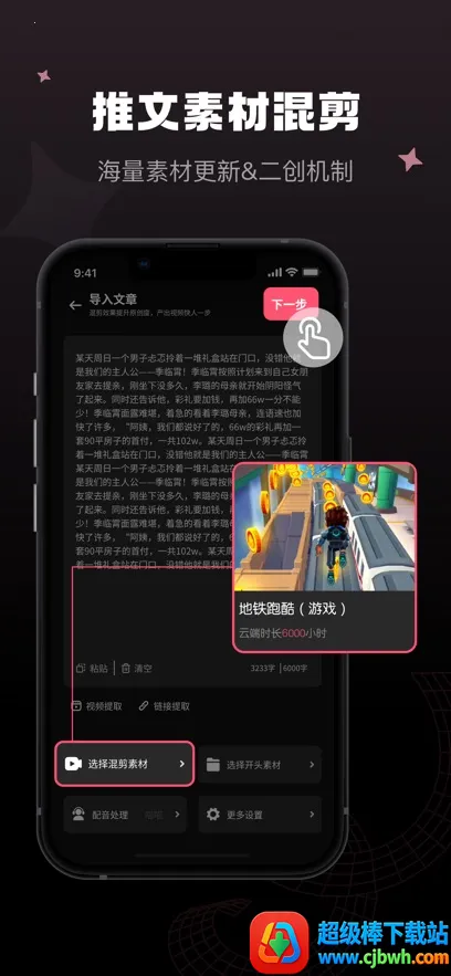 1. 海量素材模板:拥有海量正版推文素材,按甜宠悬疑穿越等小说类型分类,支持按高点击率片段爆款文案模板筛选,内置素材标签系统,输入关键词可定位对应章节文案及配图建议,还能一键收藏优质素材。