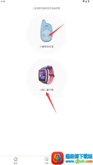 3、根据设备类型选择小鹿定位电话或小鹿儿童手表,进入对应的绑定操作界面。