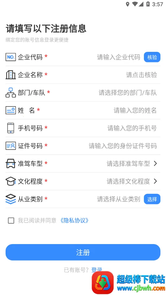 安运保是一款超棒的企业交通安全管理驾驶员培训软件。它能解决企业交通安全管理难题,帮驾驶员提升安全意识。其功能超丰富,有例检流程管理,能逐项安全检查,自动生成电子记录且支持溯源查询;安全培训学习,内置交通安全资料,支持多种学习与测试反馈;驾驶员档案管理,整合证件信息与违规记录查询。对长途货运司机、企业交通管理员等人群都很适用。注册时,先填写企业代码、姓名、手机号等信息,点击核验按钮就能完成身份认证。操作指引清晰,每项功能都有说明或图示,轻松上手。还支持系统定制,适配不同企业业务流程。多终端数据同步,方便管理者远程监控进度。能覆盖全作业流程,操作记录自动保存,培训与作业轨迹可导出,便于内部审核与问题追溯。有了它,企业交通安全管理更高效,驾驶员培训更便捷。