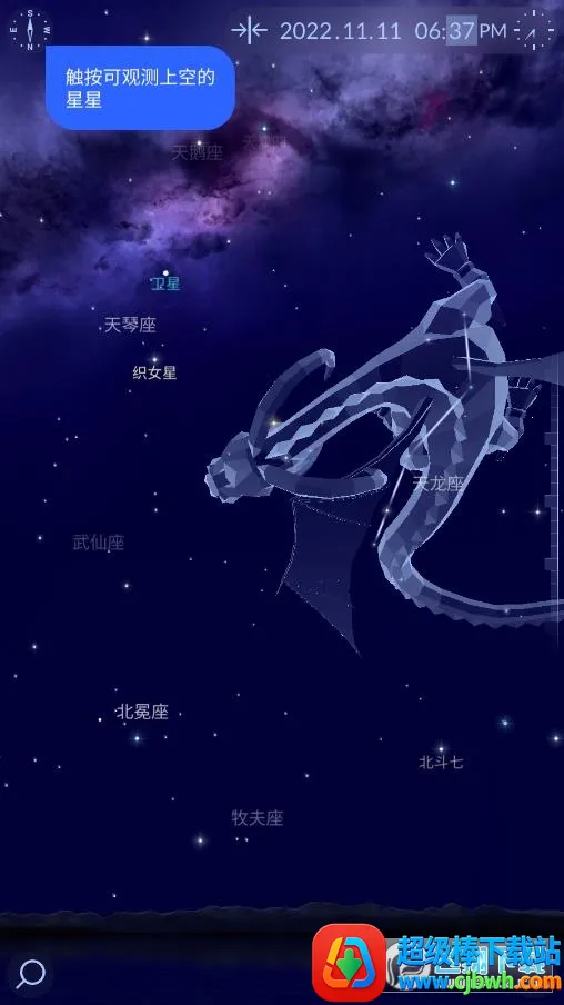 它能结合天文数据与最新科技,以水平面为界展示实时星空的漂亮色彩,呈现超多星体的详细介绍。