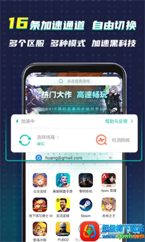 支持全球热门手游,新游抢先预约体验,海量正版外服手游全覆盖,专线保障多款热门手游网络加速,如英雄联盟手游、光遇等。