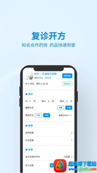 2. 支持在线开具处方,患者可接收电子处方,合作药店迅速配送药品到家。