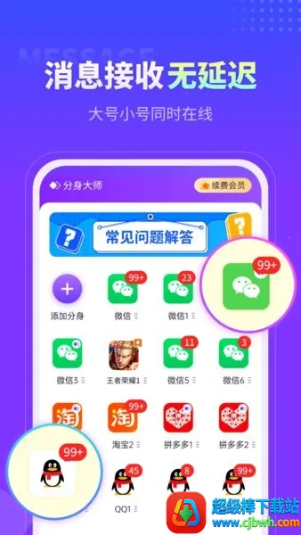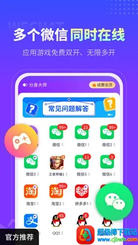 2、应用无限多开:独立研发的应用多开分身功能,满足商务、游戏玩家、微商等人群微信多开分身需求。