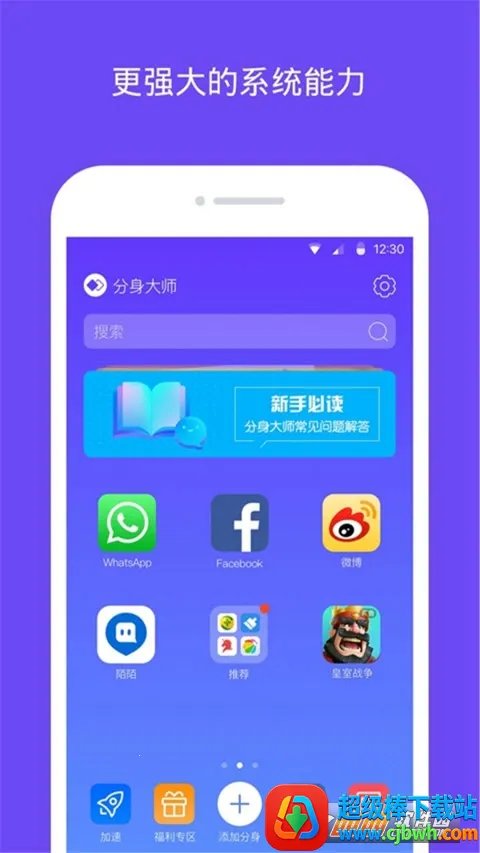 应用无限多开:独立研发的应用多开分身功能,完美支持微信、QQ、游戏等所有应用无限多开分身,满足商务、游戏玩家、微商等人群需求。
