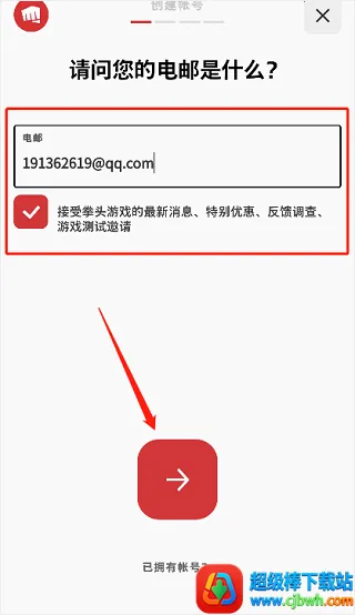 3、输入您的电子邮箱账号,勾选协议,点击下一步。